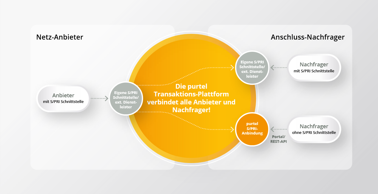 Ein einziger Rahmenvertrag für Netzanbieter und Nachfrager, die Abwicklung erfolgt zentral über purtel.com als Aggregator und Plattformbetreiber.